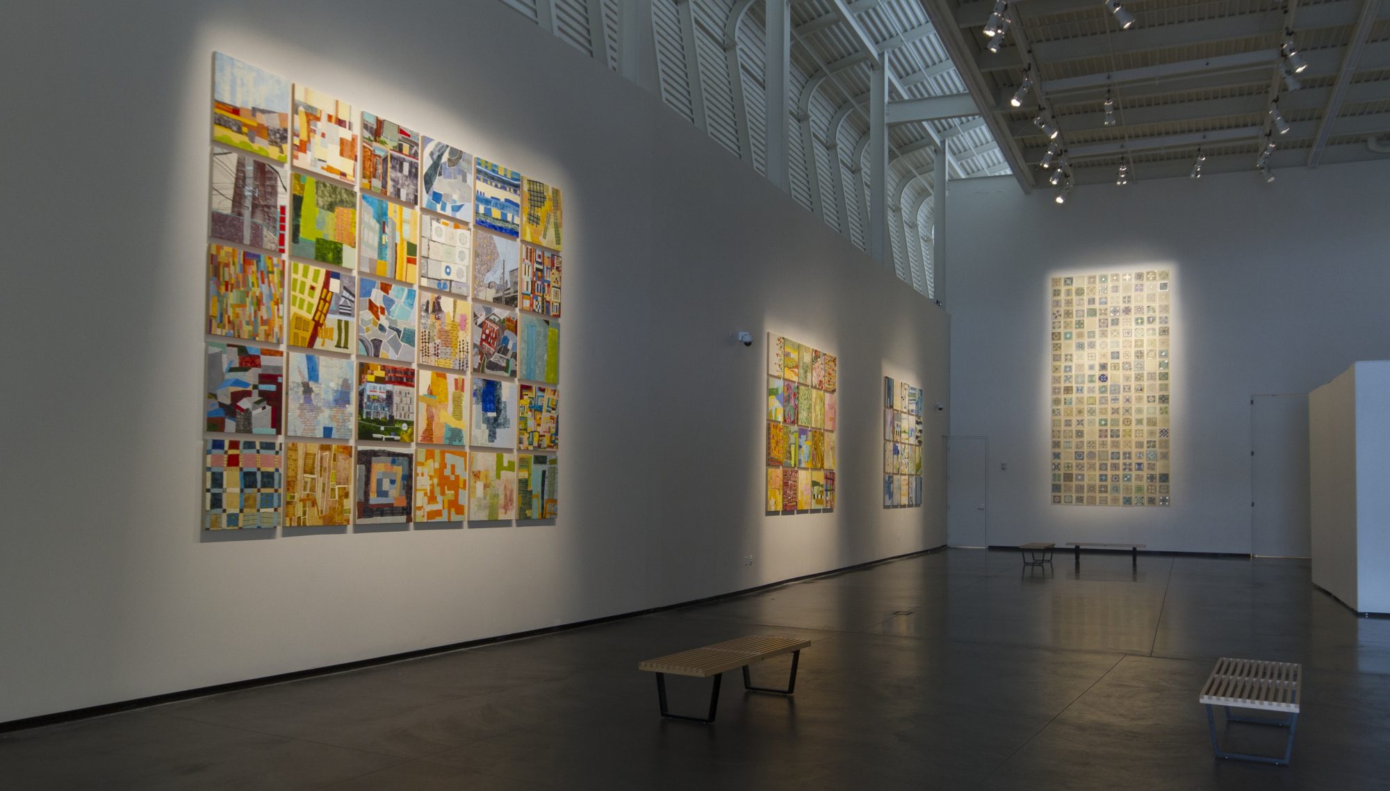 Barbara Ellmann has been working with encaustic paint for over twenty years, creating individual 24″ square paintings, and exhibiting them in multi-panel grids of varying dimensions. Her practice explores the way that we process and catalogue visual experience, and the paintings represent her response to pattern and place.